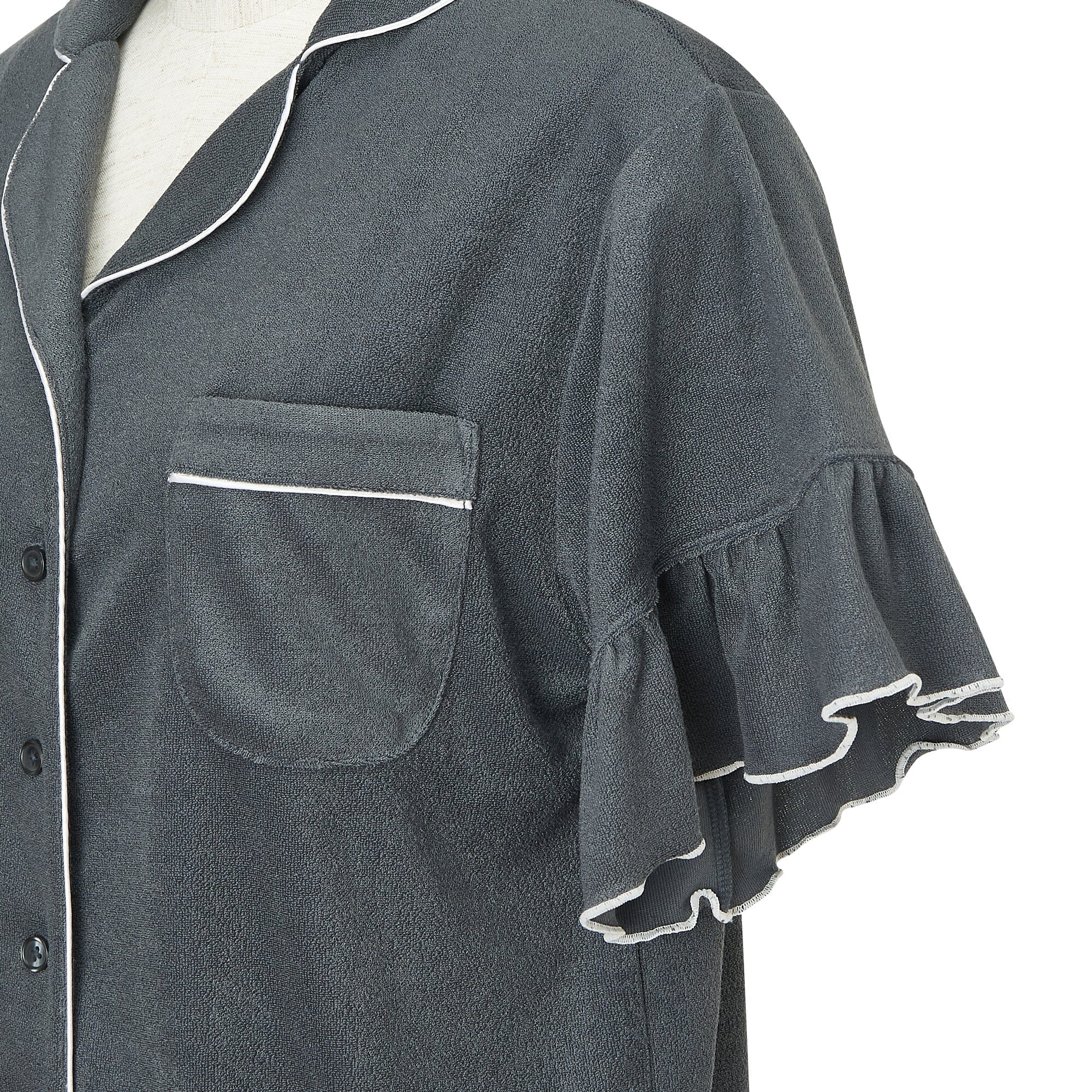 The ruffled design on the sleeves and hem is very trendy. We also recommend coordinating your wear with room shoes.