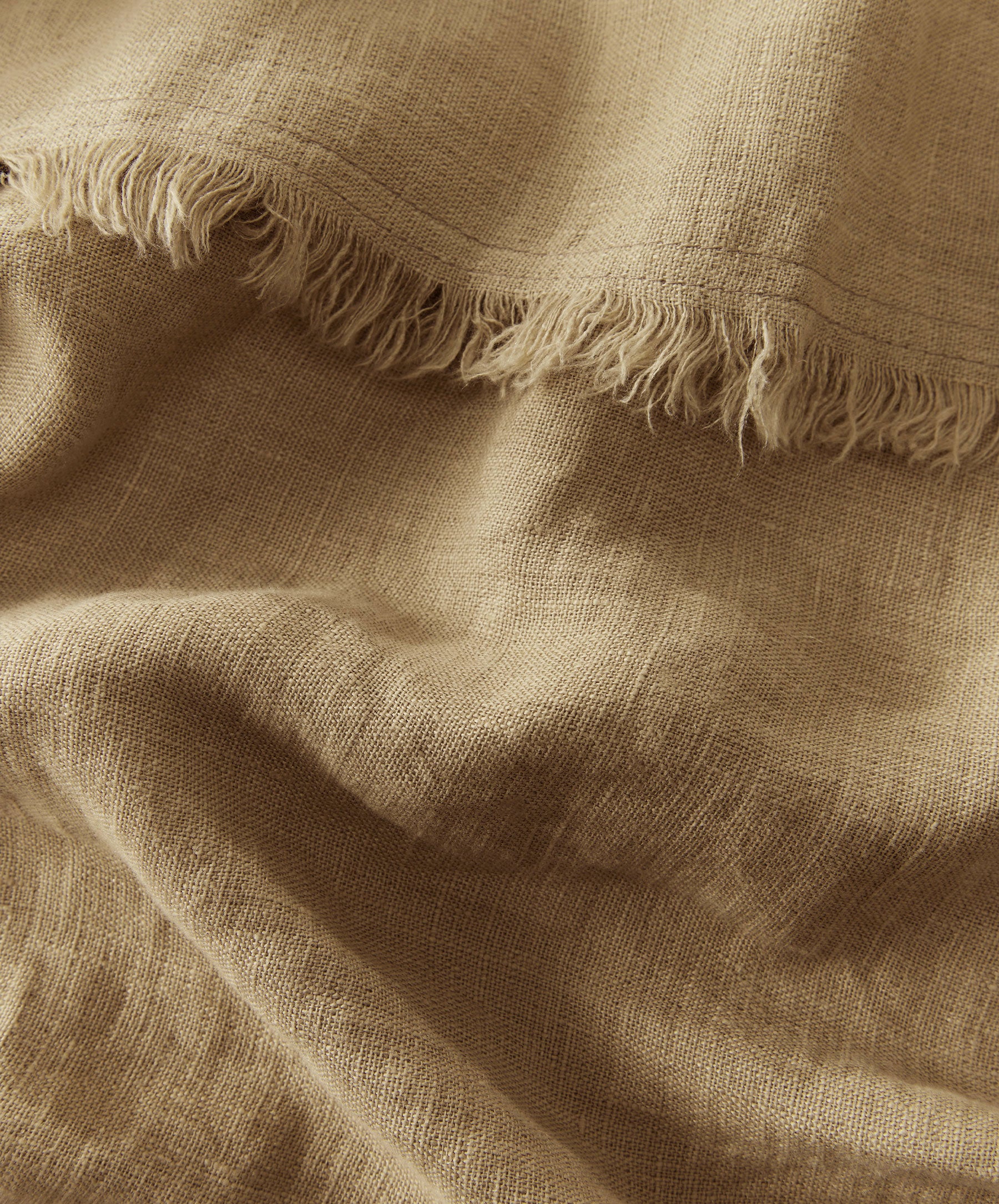 Crafted from a heavyweight pure linen, and finished with a delicate eyelash fringe and double stitch detail.