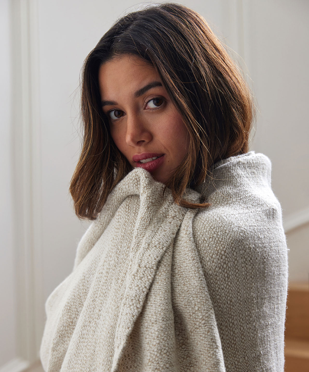 Expertly crafted on a Jacquard loom in Portugal, the Luna Throw features a delicate solid pattern made of thick, dense yarns.